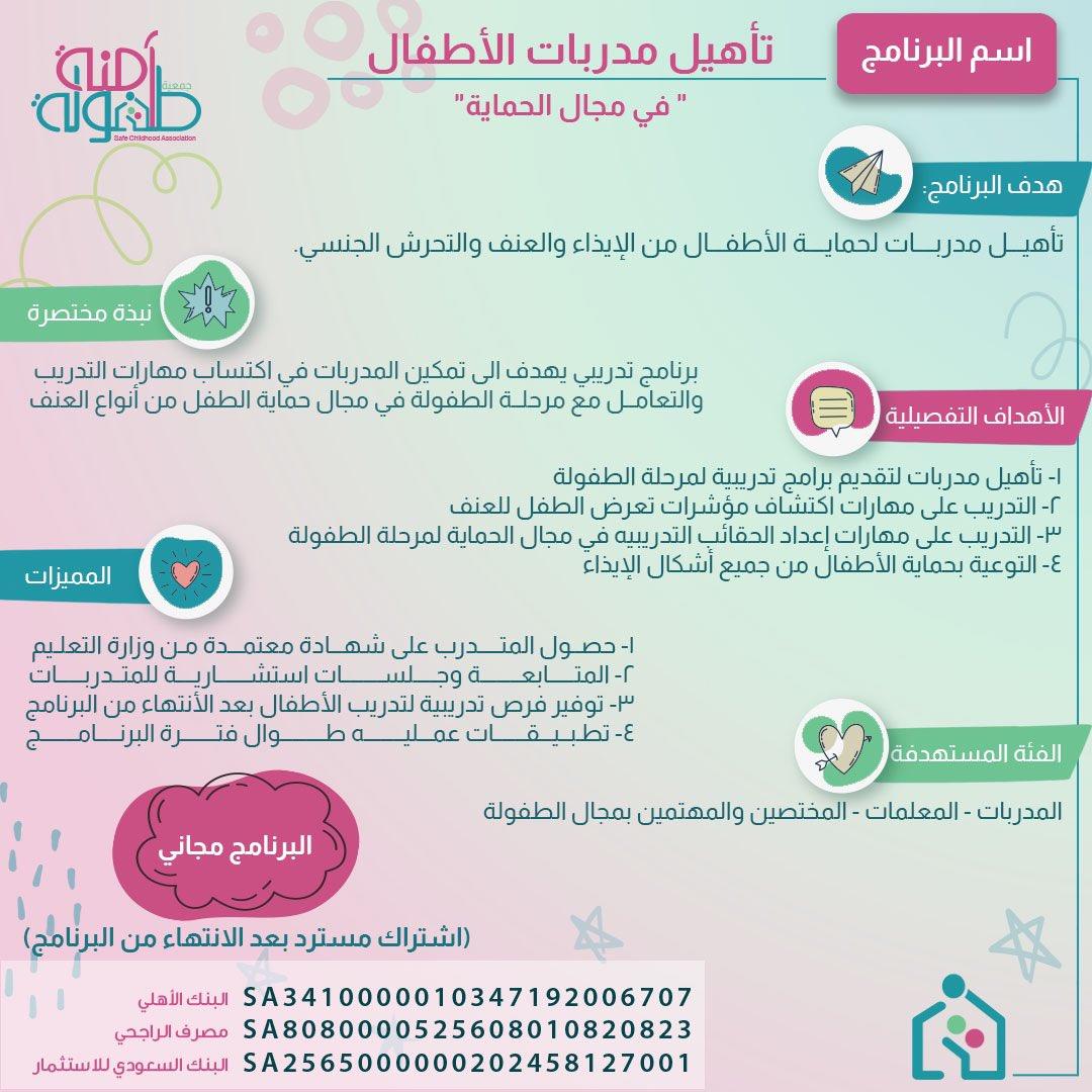 جمعية طفولة آمنة هي إطار يهتم بالطفل في جميع جوانب حياته الإيمانية والفكرية والحقوقية والأمنية . وتم التصريح لها لبدء العمل وممارسة مهامها وأعمالها بموجب قرار معالي وزير العمل والتنمية الاجتماعية رقم